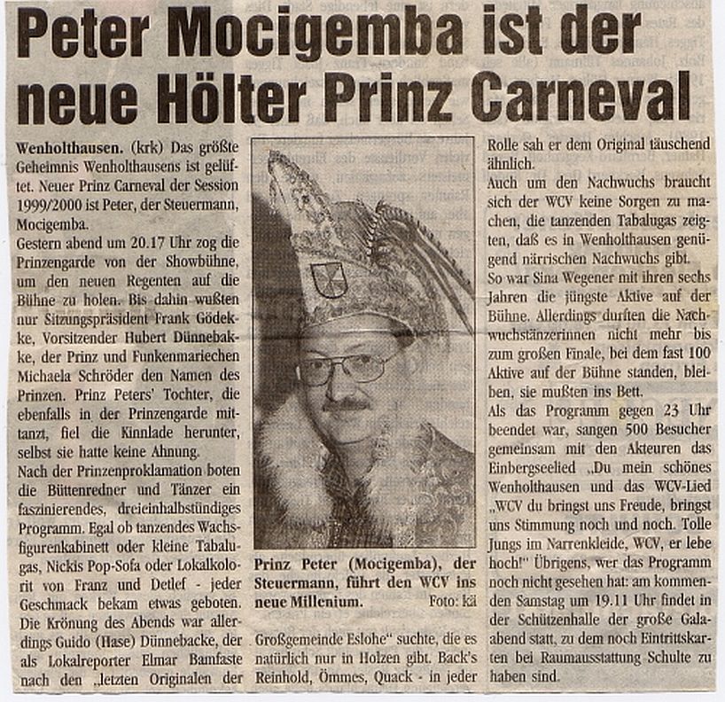 1999 – Prinz Peter von Wenholthausen Bericht der lokalen Preisse über den Karneval in Wenholthausen (November 1999)
